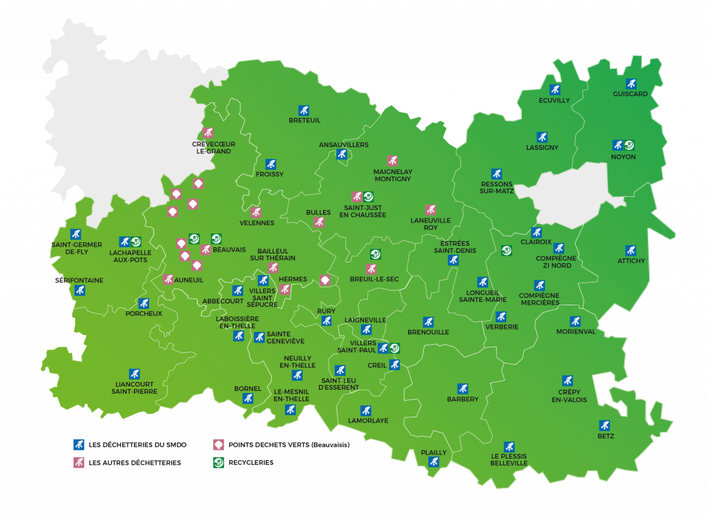 Le Syndicat Mixte du Département de l’Oise (SMDO) dispose d’un réseau de 51 déchetteries sur son territoire dont il assure la gestion.